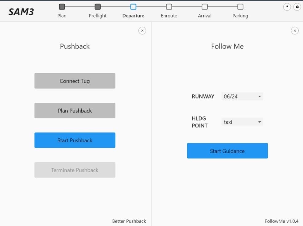 Začátkem letošního dubna Stairport oznámil své plány na v3 SAM, včetně podrobností o tom, jak bude vypadat, a nové revize uživatelského rozhraní a zaměření na integraci s doplňkem třetí strany “Better Pushback”.