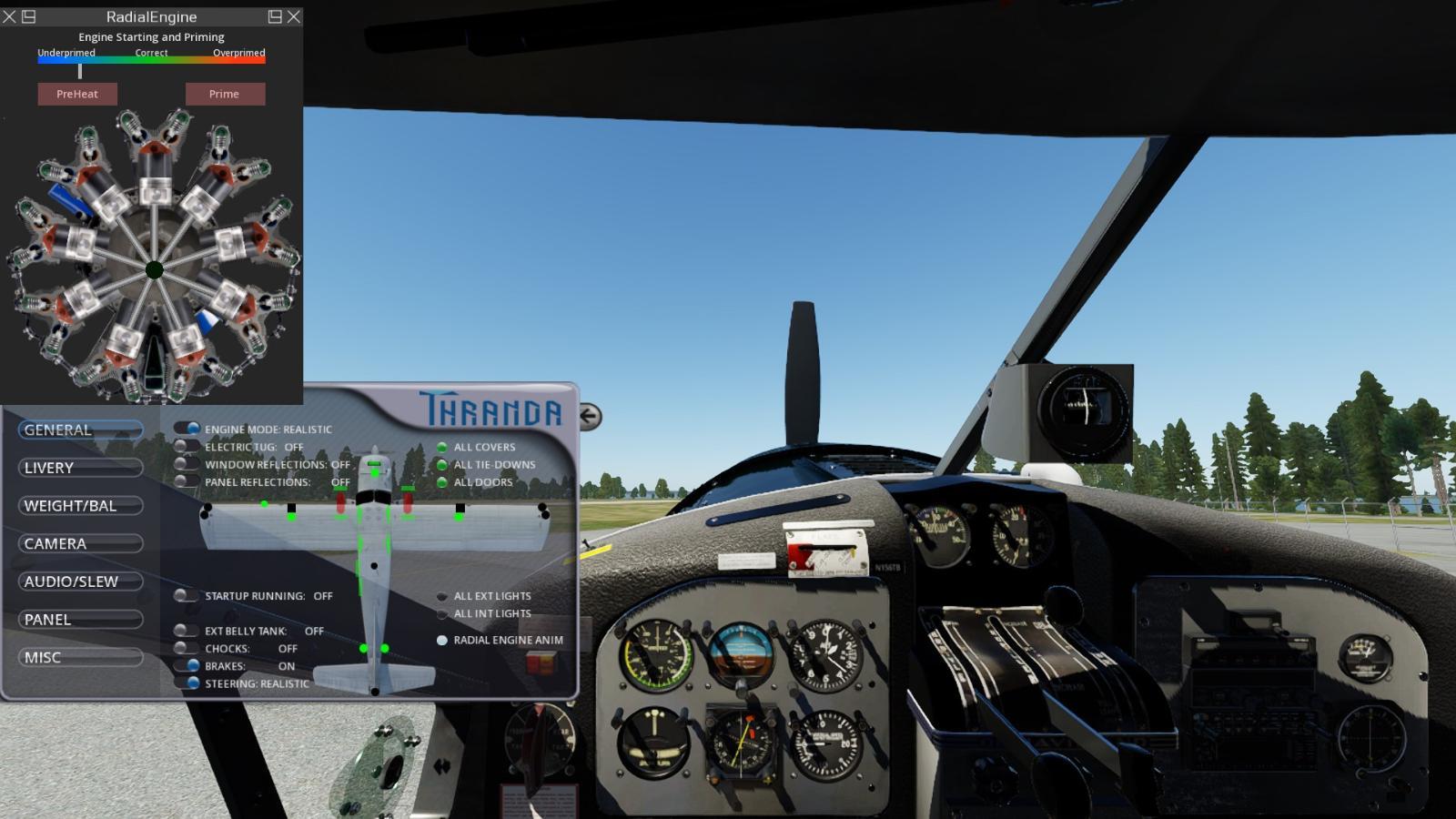 - Nastavení realističnosti pro motor a ocasní kolo (zjednodušené a realistické režimy).
